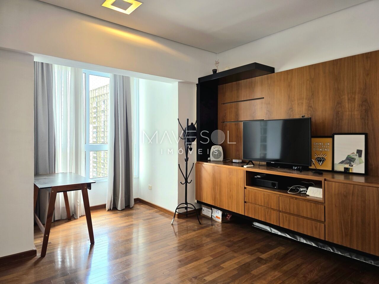 O imóvel é espaçoso, fica em andar alto e, é muito iluminado, foi reformado, um dos 2 dormitórios foi aberto para sala, que ficou espaçosa, o pé direito é alto, tem lavabo, a cozinha foi planejada e vem com bastante armários, é integrada a sala, e área de serviço.