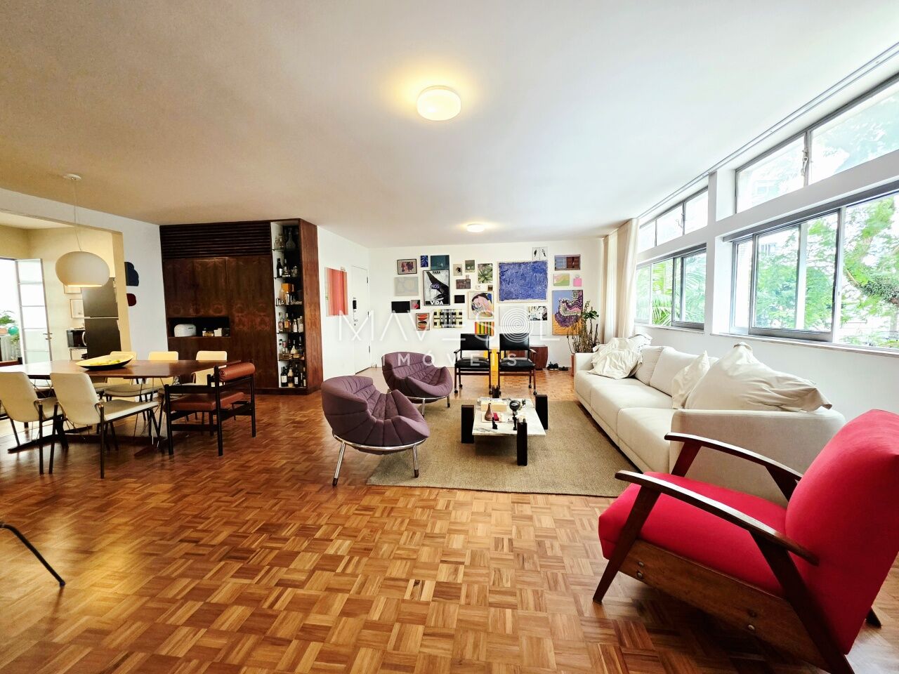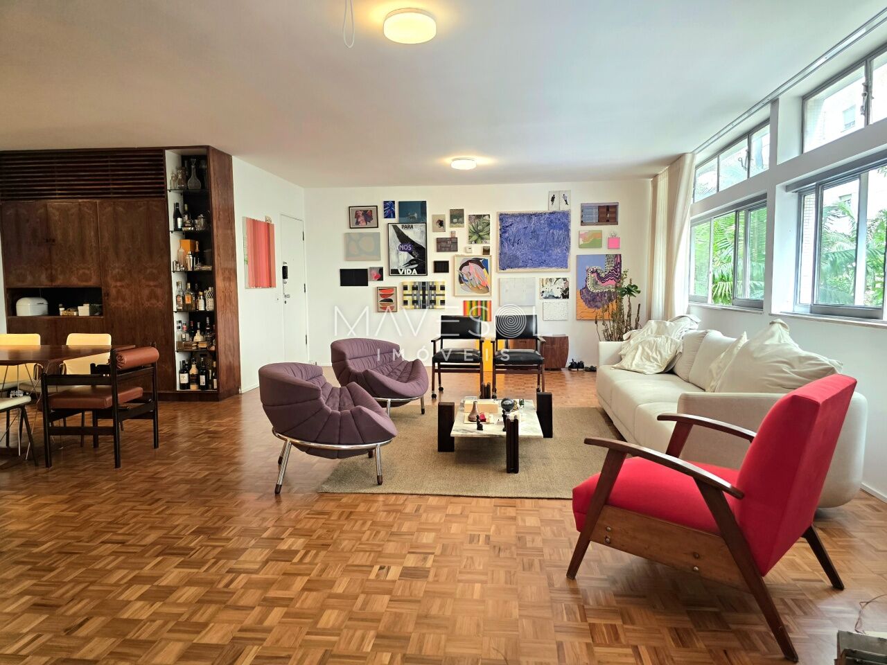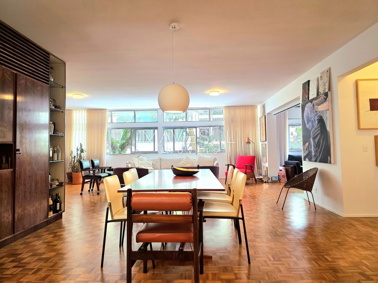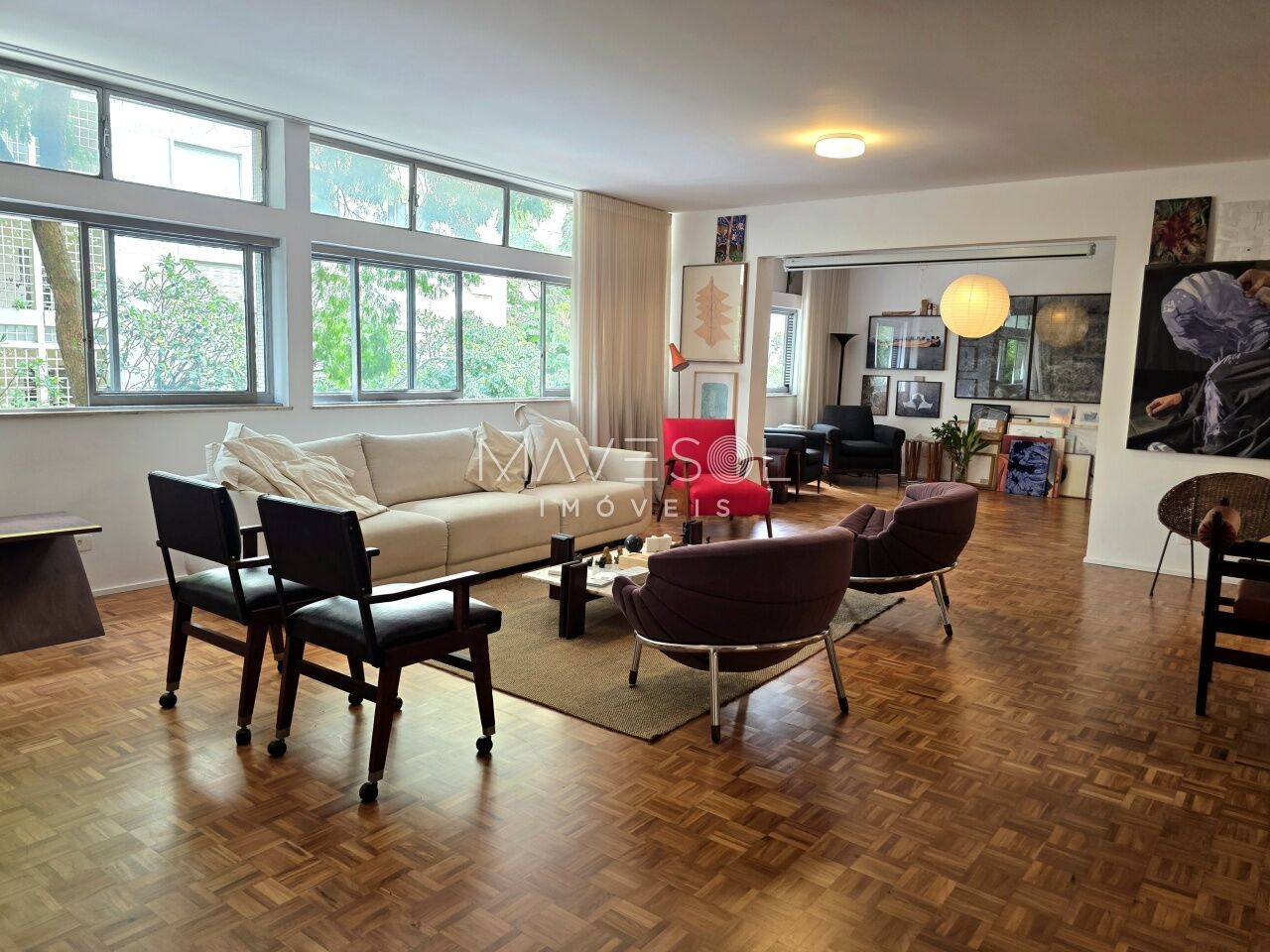 A planta original tem3 dormitórios sendo 1 suíte, 1 dormitório foi integrado à sala com fácil reversão, se preferir, ventilação cruzada, janelões generosos com vista para o verde, na altura copa das árvores.