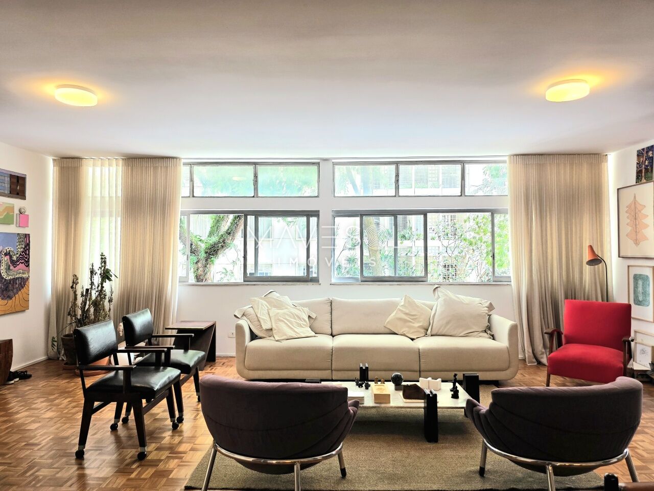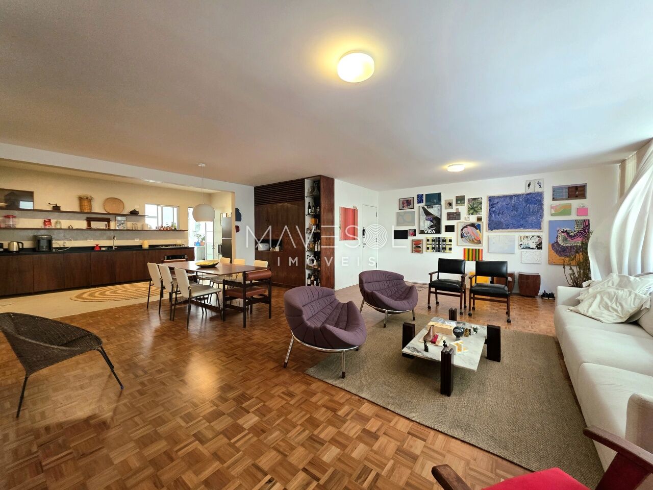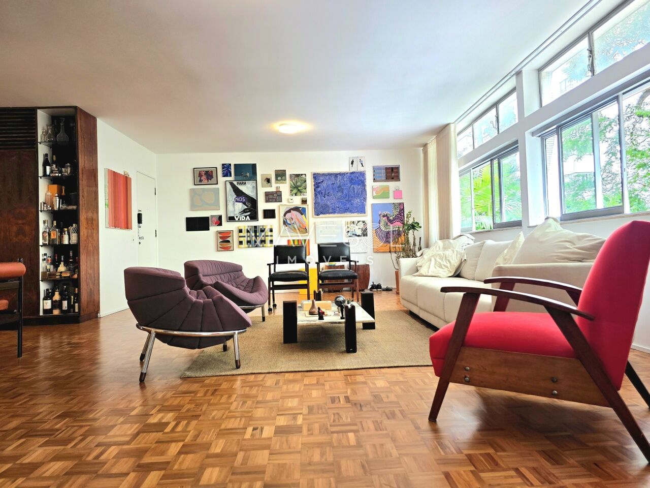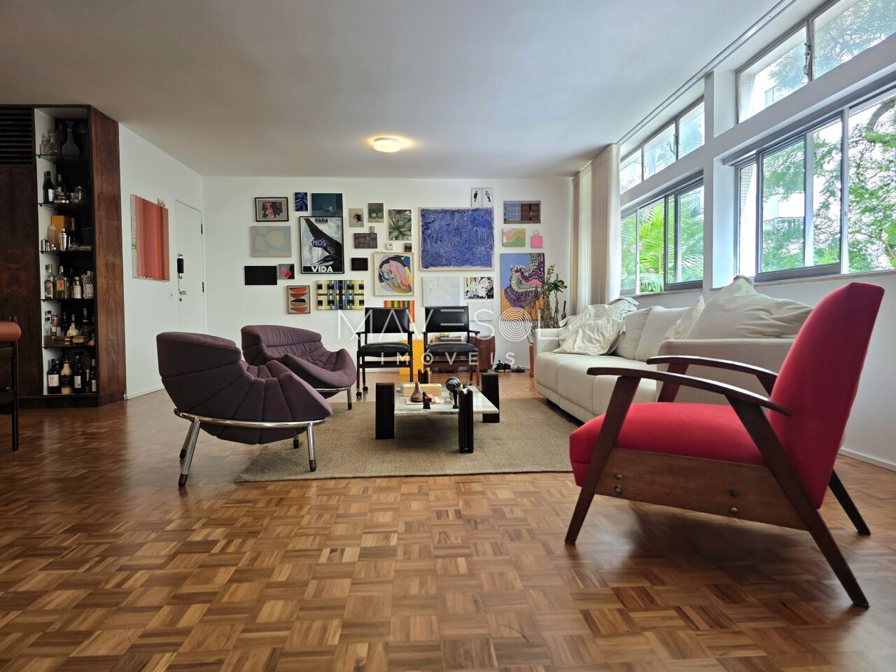 A planta original tem3 dormitórios sendo 1 suíte, 1 dormitório foi integrado à sala com fácil reversão, se preferir, ventilação cruzada, janelões generosos com vista para o verde, na altura copa das árvores.