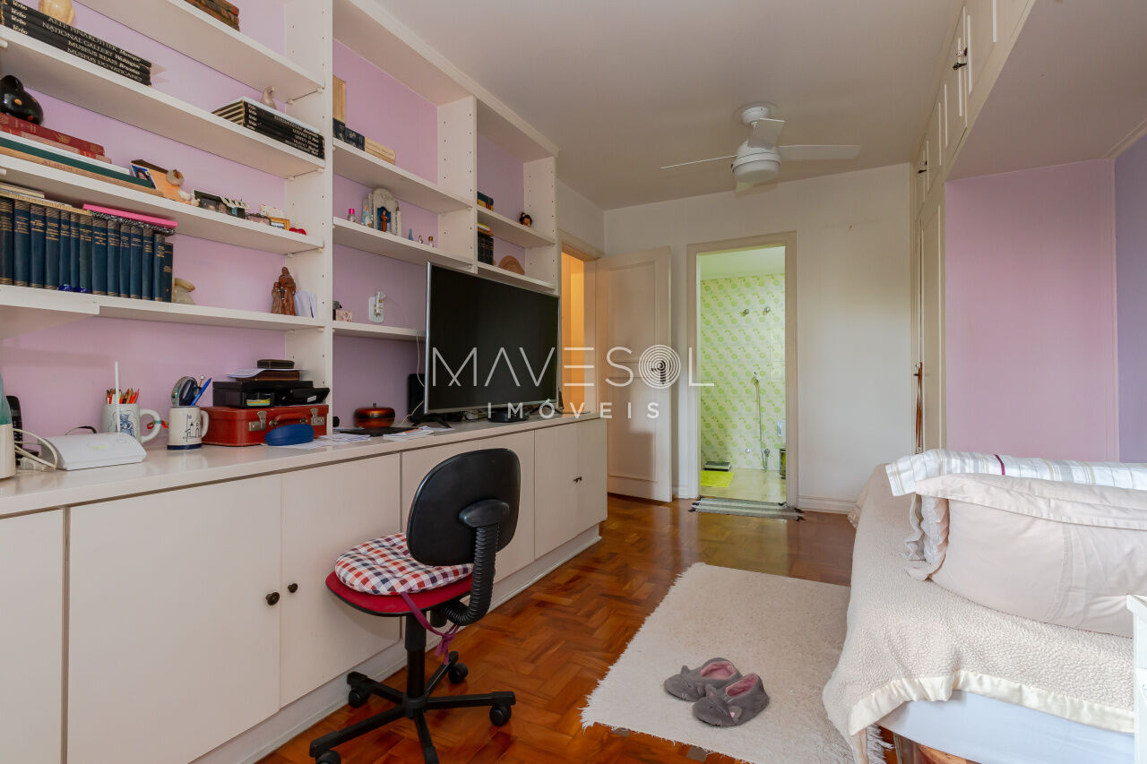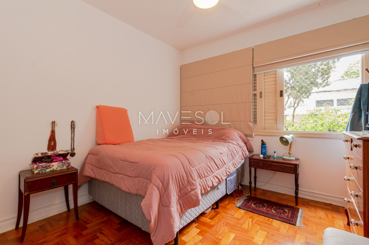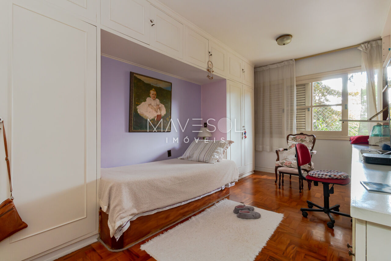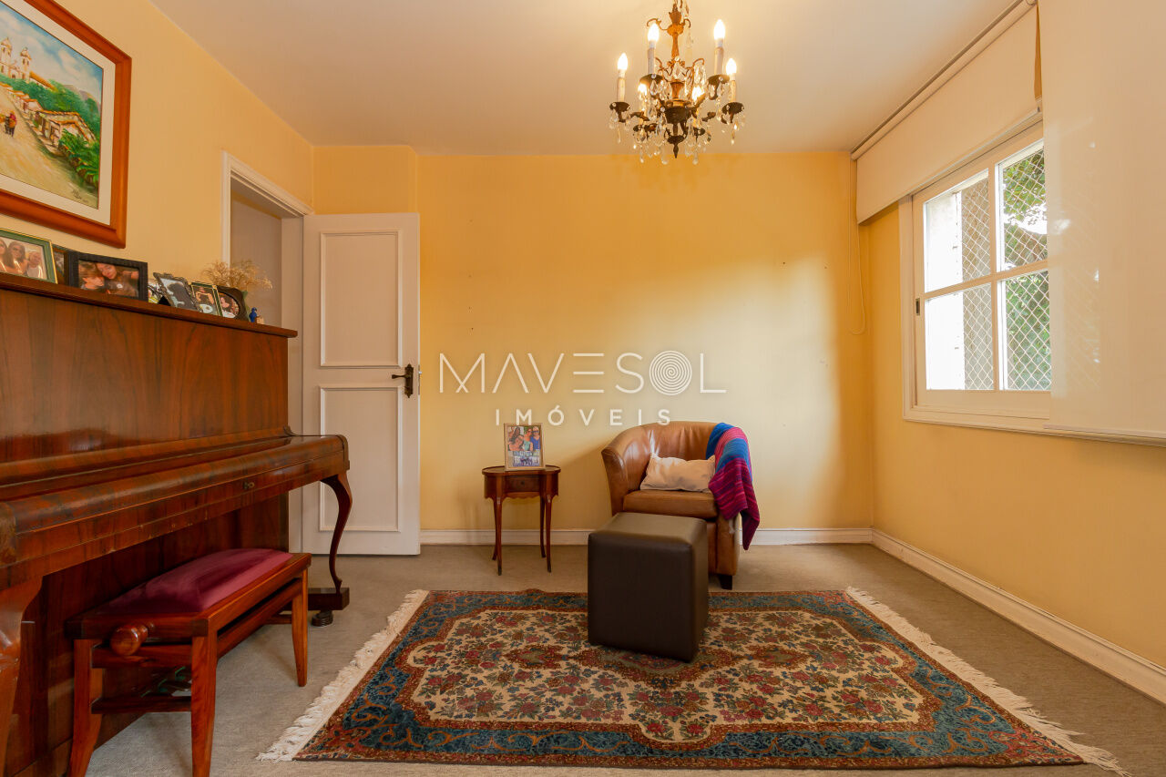Com 170 metros quadrados, o imóvel possui quatro dormitórios em sua configuração original, sendo que um foi integrado diretamente à sala, enquanto outro é a suíte master. Além disso, conta com quatro banheiros e uma vaga de garagem coberta.