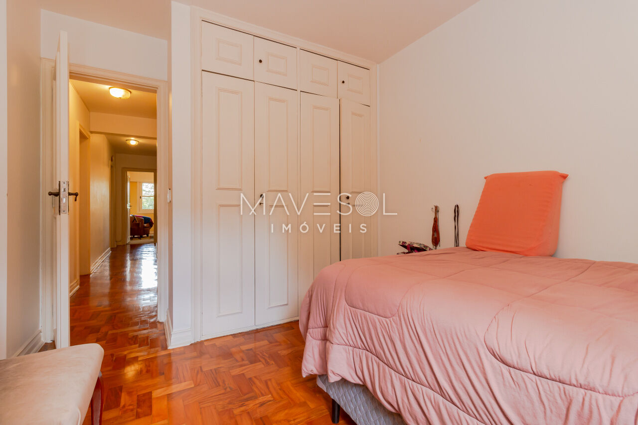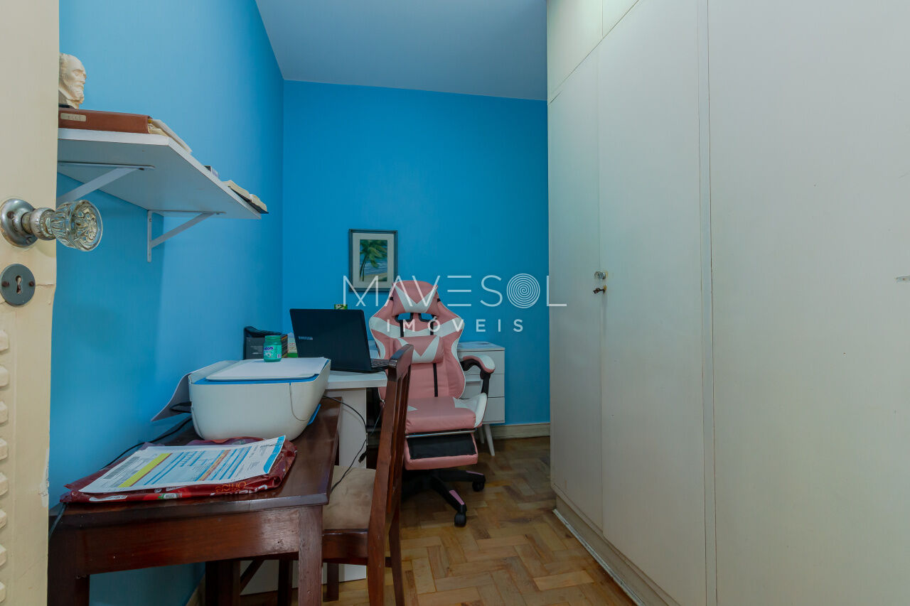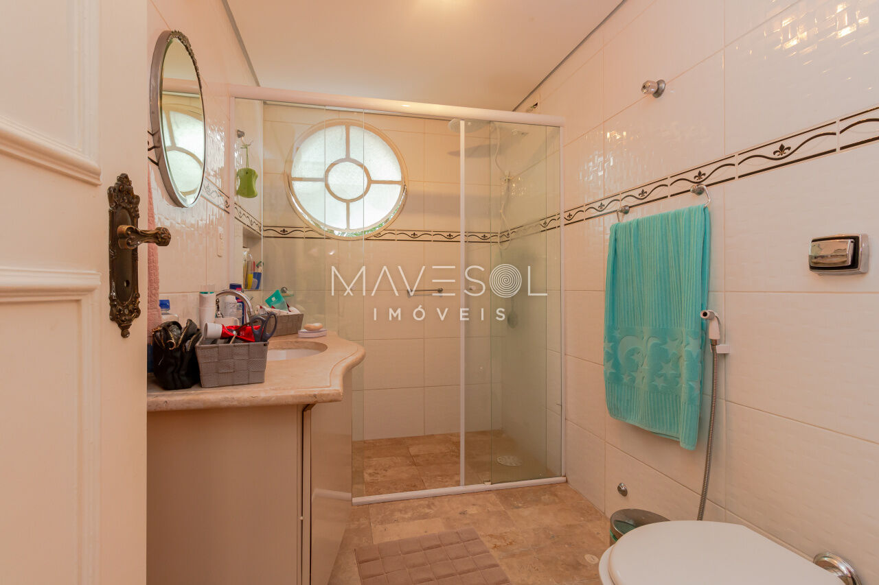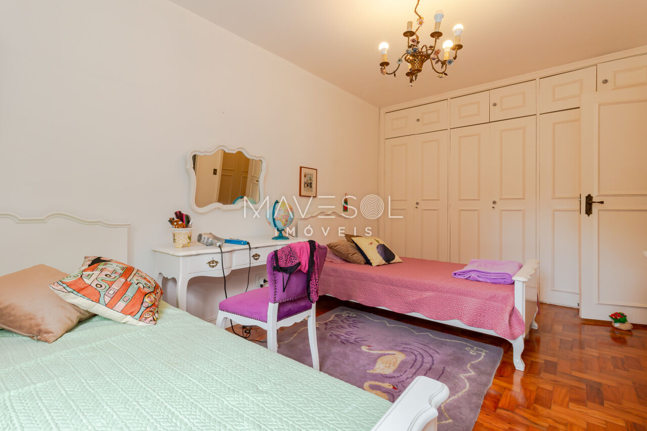Com 170 metros quadrados, o imóvel possui quatro dormitórios em sua configuração original, sendo que um foi integrado diretamente à sala, enquanto outro é a suíte master. Além disso, conta com quatro banheiros e uma vaga de garagem coberta.