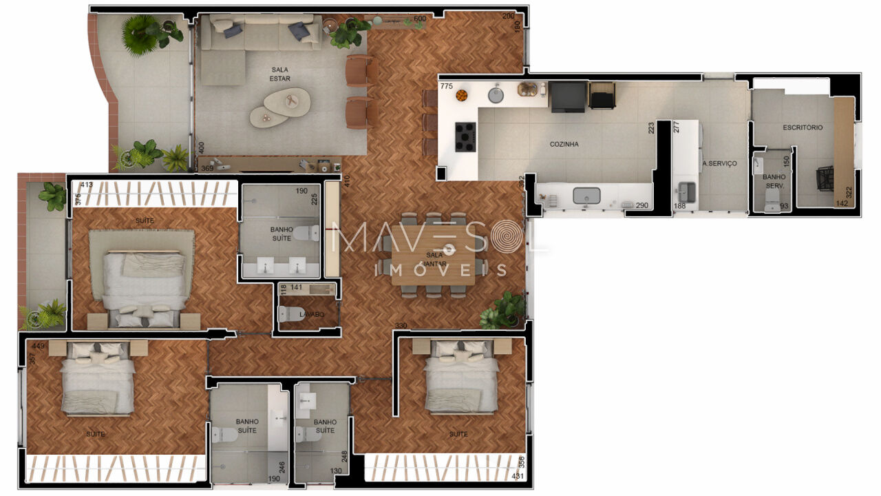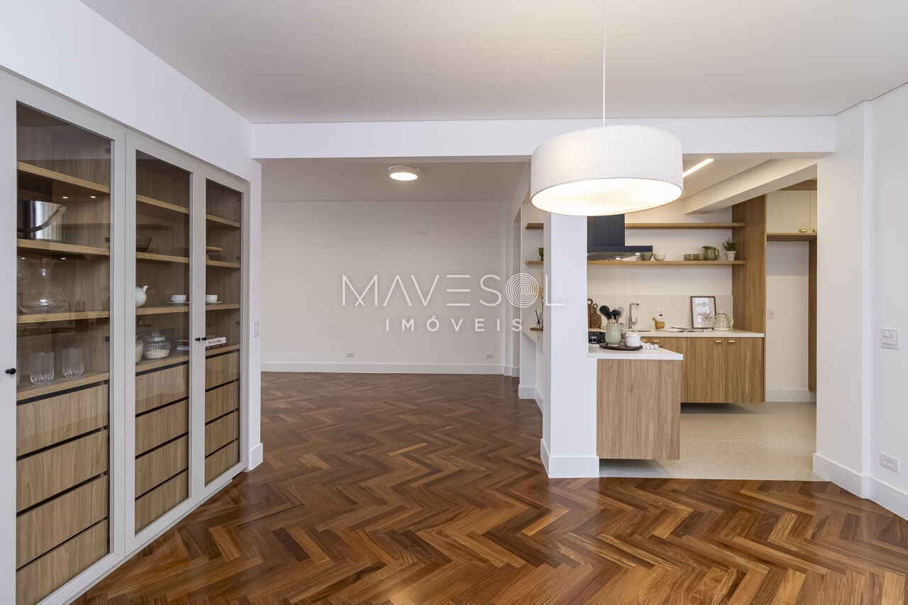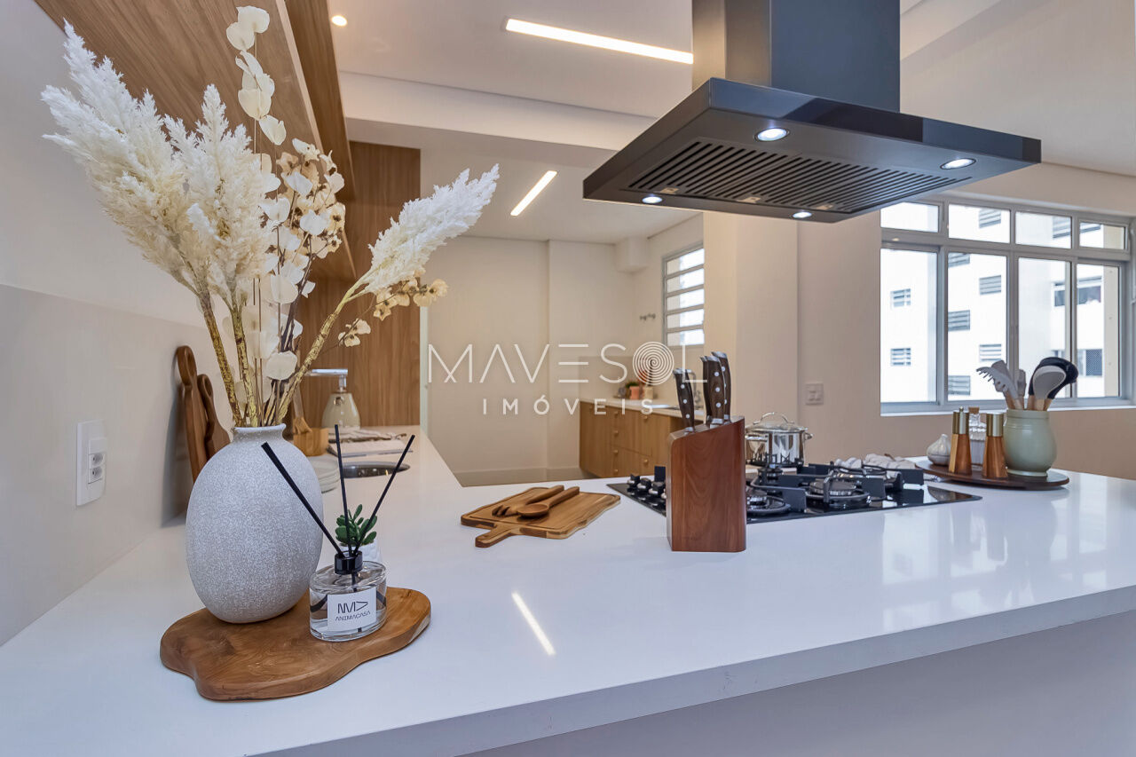 São 177 m2, muito bem distribuídos, com uma sala ampla para dois ambientes, integrada à cozinha, perfeita para receber, viver e ficar.