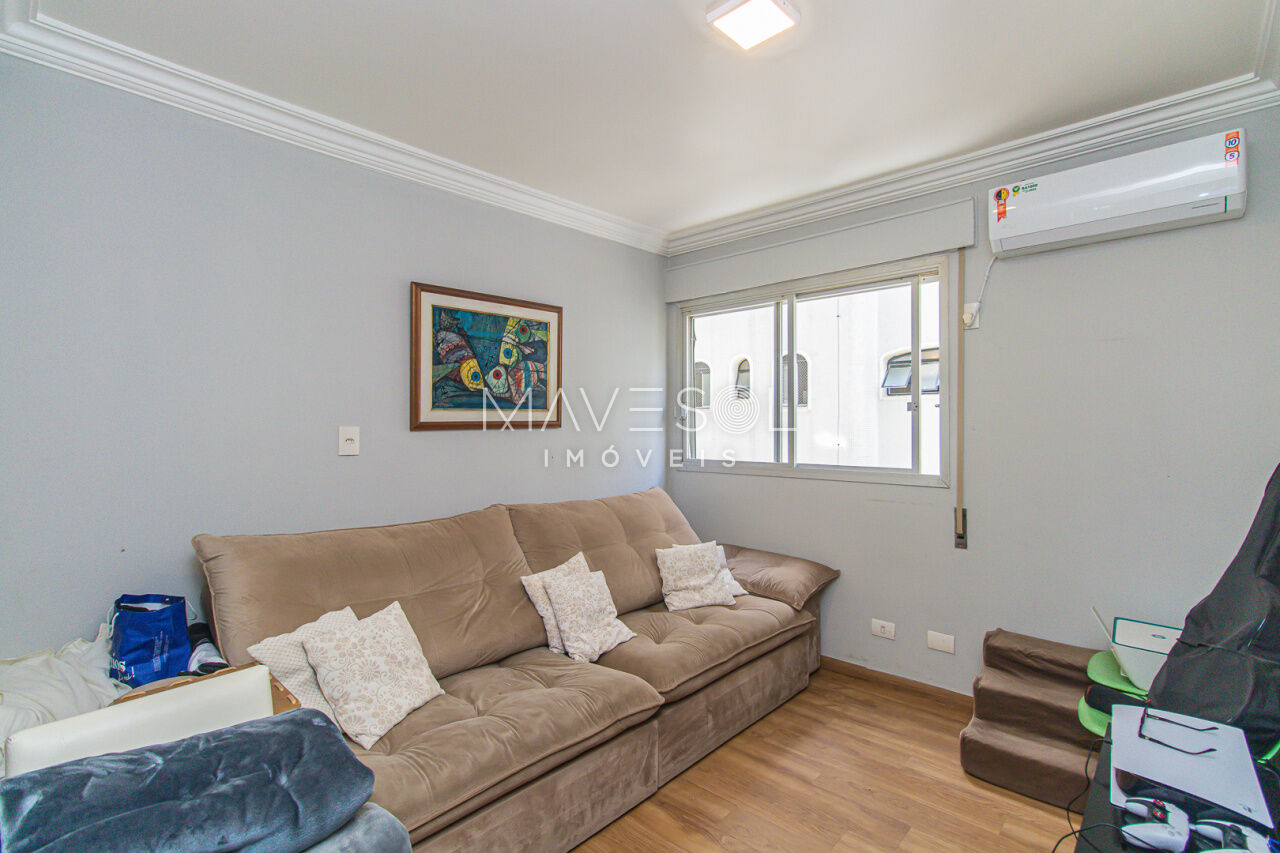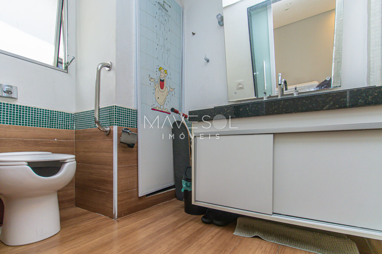 Com 204,20 m² de área útil, 4 dormitórios, sendo 3 suítes, além de 1 dormitório que pode ser utilizado como escritório ou sala de TV, lavabo, copa, cozinha, dependência de serviço com banheiro, 2 vagas de garagem e depósito.