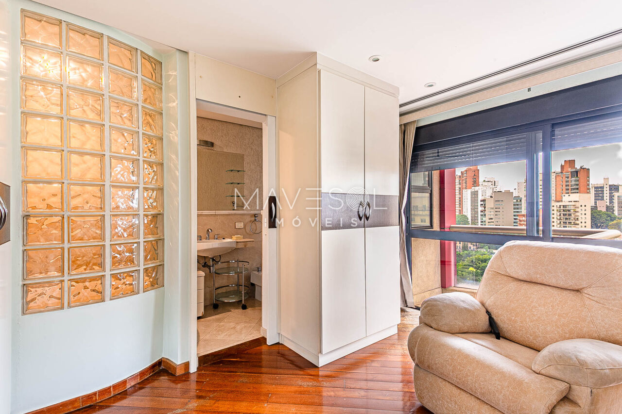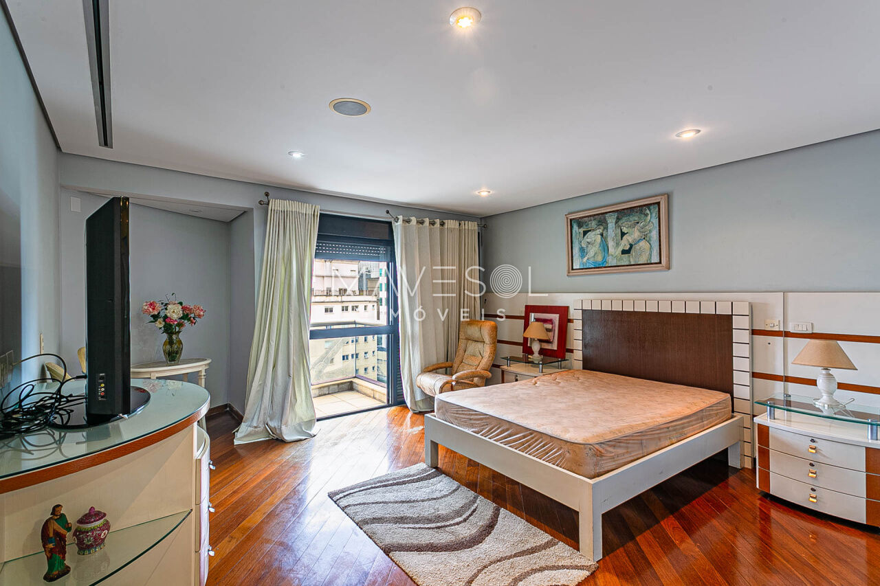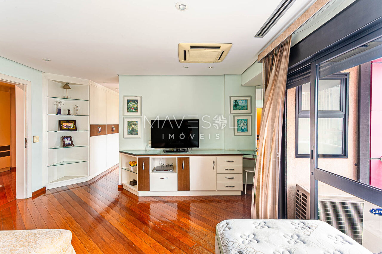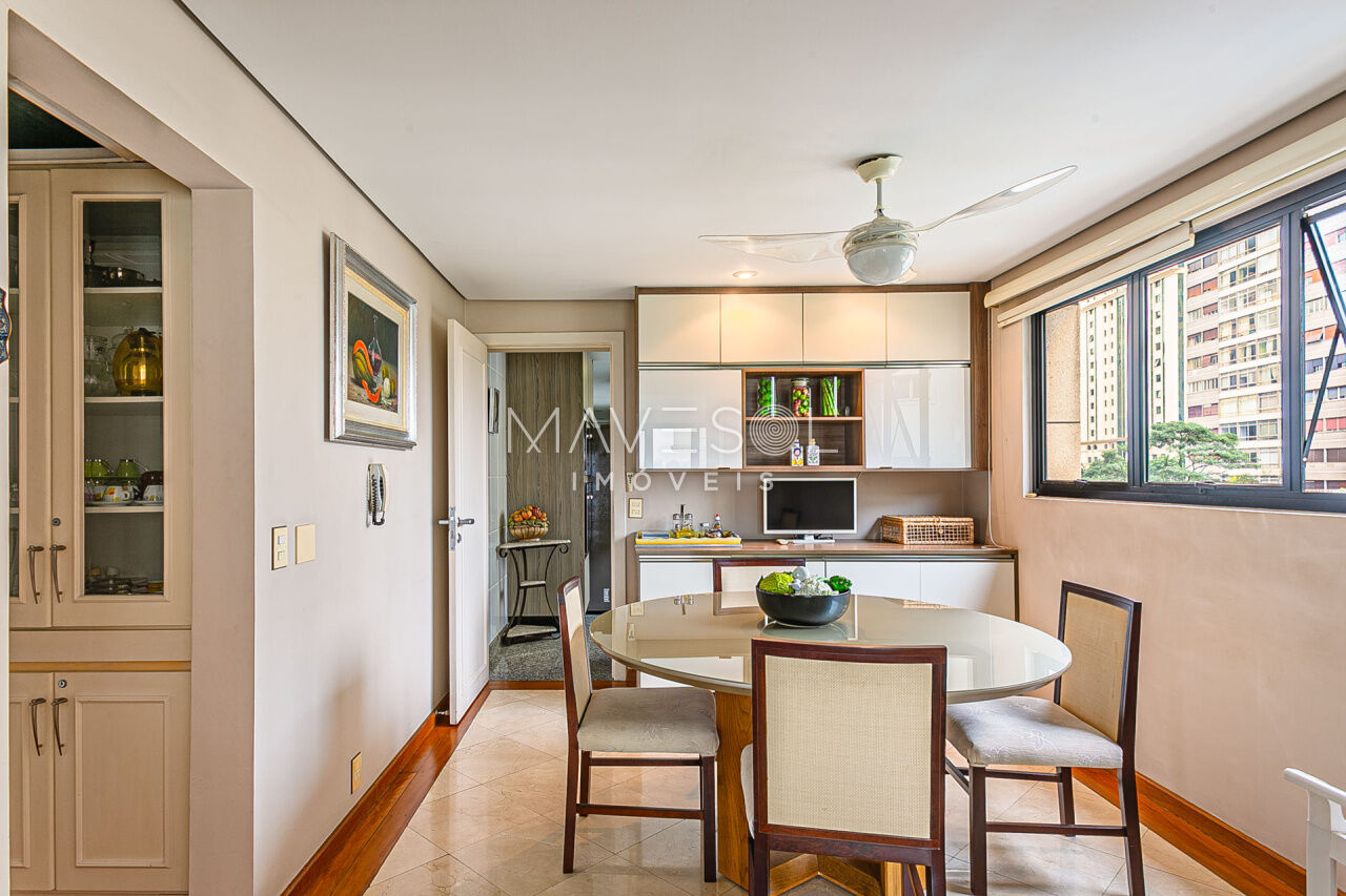 Alto padrão em prédio com arquitetura atemporal, amplo e muito iluminado com a melhor vista, excelente planta e distribuição em seus 390m2, varias salas, terraços espaçosos sendo 1 terraço gourmet com churrasqueira, sala de almoço cozinha planejada, dupla dependência para funcionários, suítes com terraço e suíte master com closet ele/ela super espaçosa.