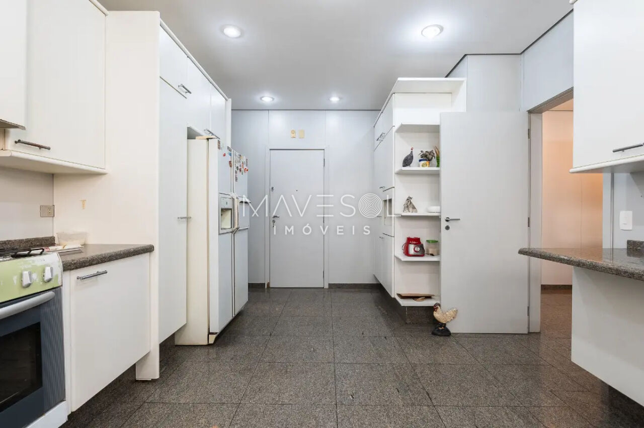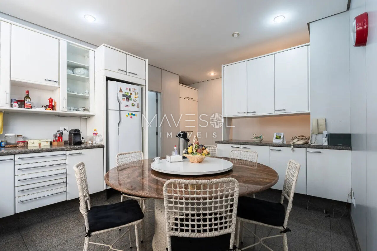 Alem das suítes, o imóvel conta com 2 dormitórios de empregada, banheiro de empregada e despensa, garantindo funcionalidade completa para o dia a dia.