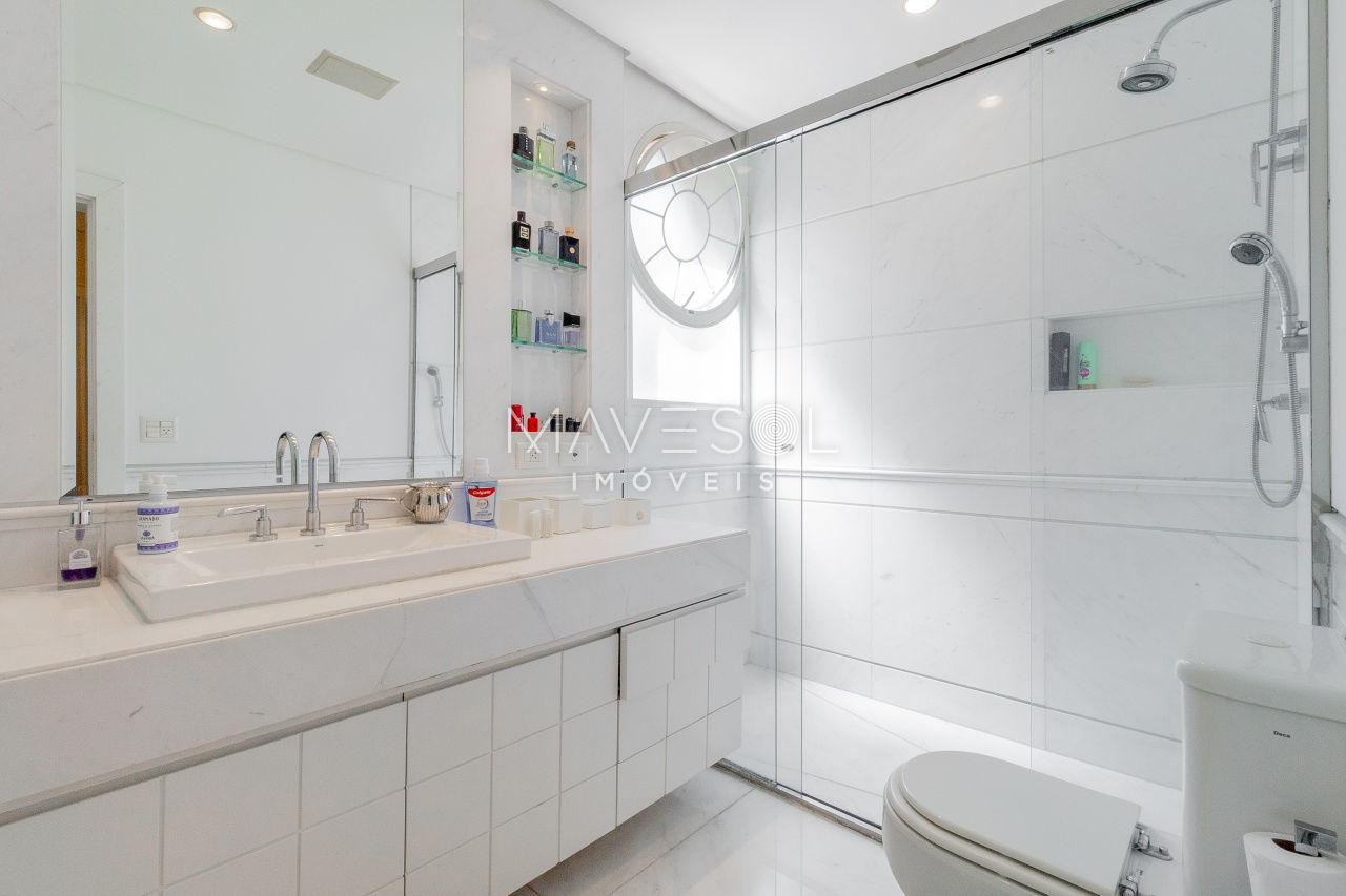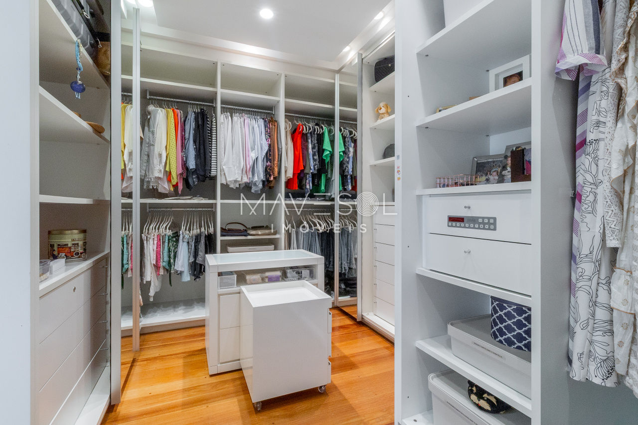 Na área íntima, as quatro suítes são amplas e contam com closets Ornare, um diferencial importante, além de uma vista privilegiada para o verde do Pacaembu. A suíte master oferece uma experiência ainda mais exclusiva em conforto e privacidade.