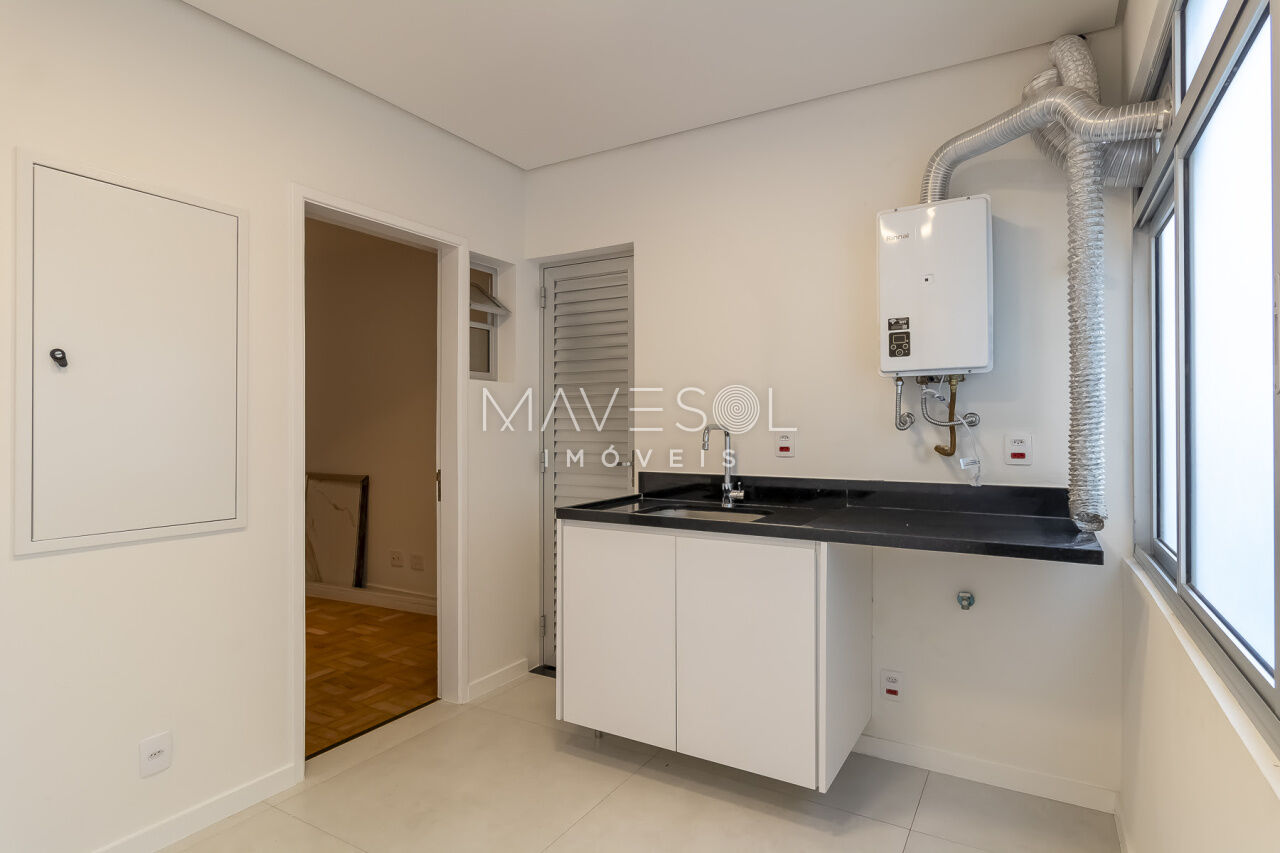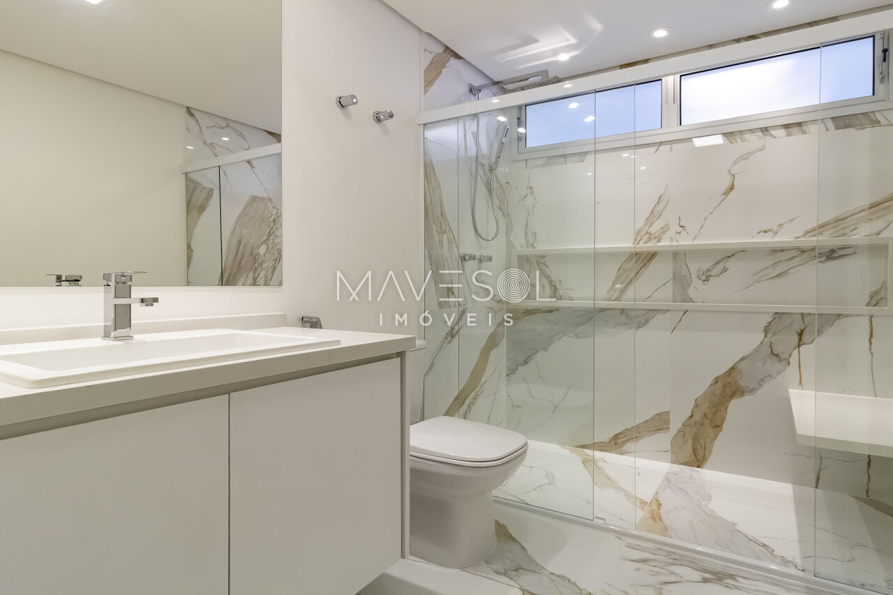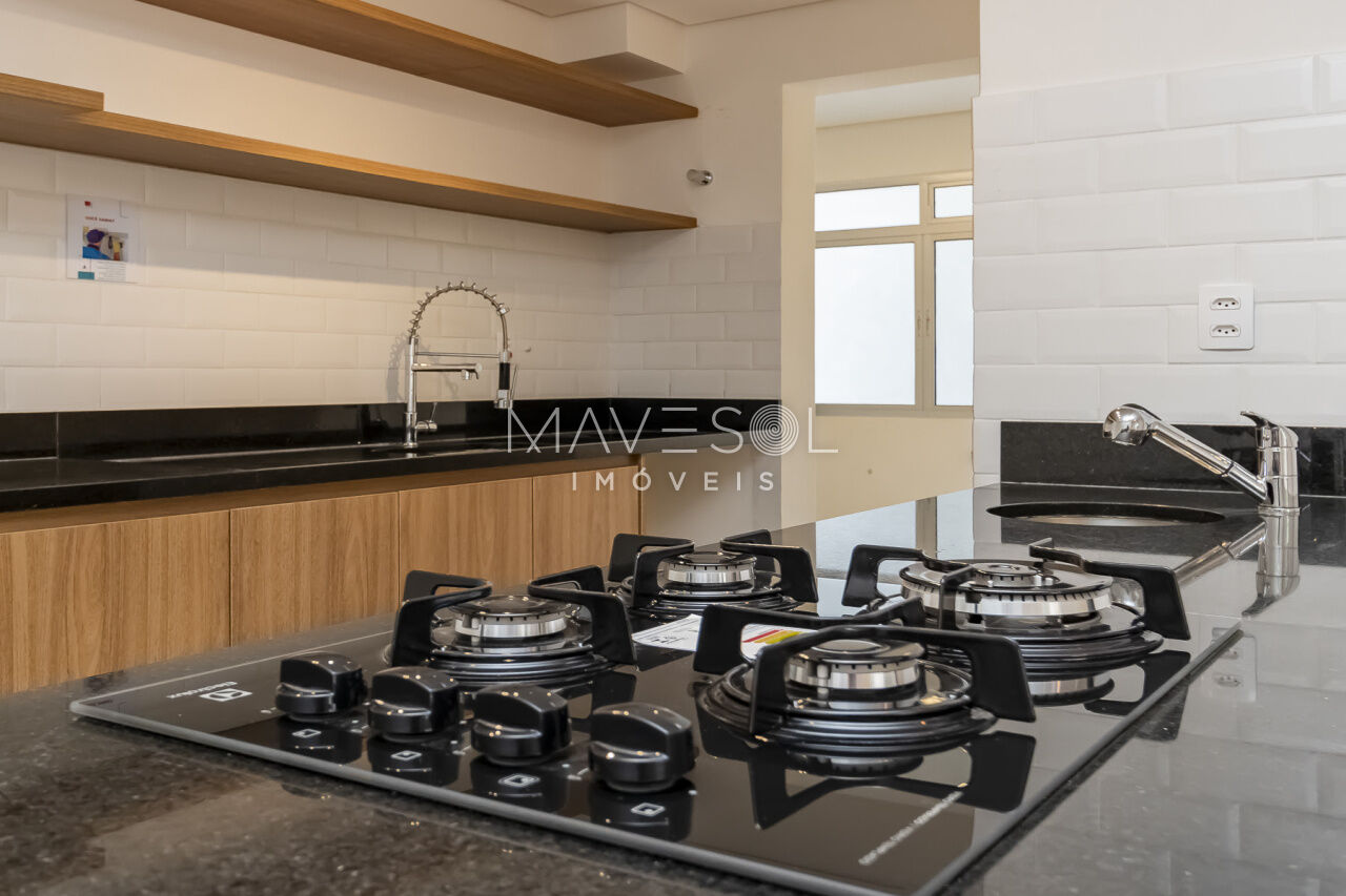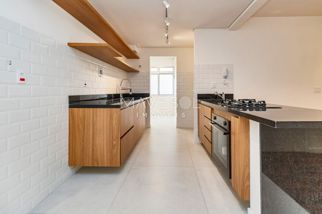 Os129,23 m² ganharam um novo e moderno visual, e contam com 3 suítes com armários, ampla sala de estar e jantar, e com cozinha integrada.