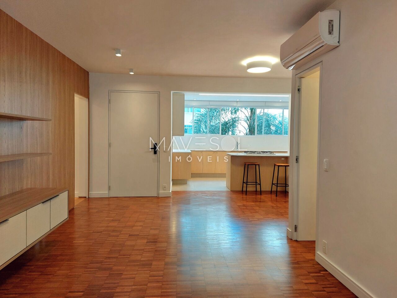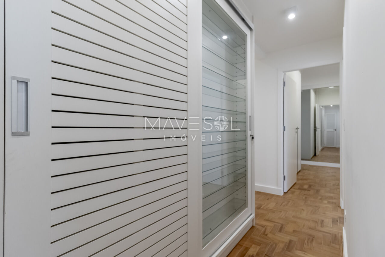Na parte íntima, você encontra 3 dormitórios amplos, sendo uma suíte com closet de dar inveja. O apê também já vem com ar-condicionado em todos os quartos e na sala, além de bastante espaço pra guardar tudo, com muitos armários planejados.