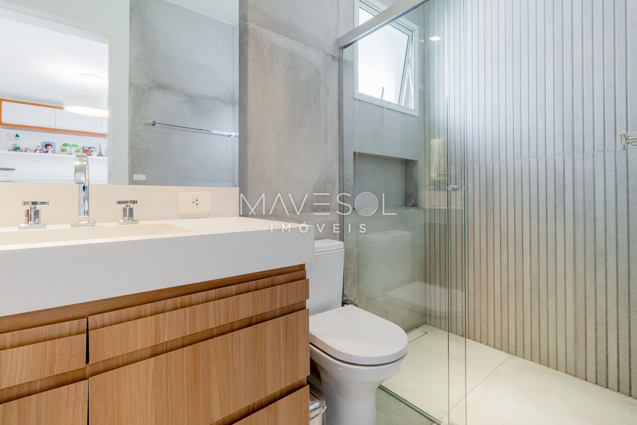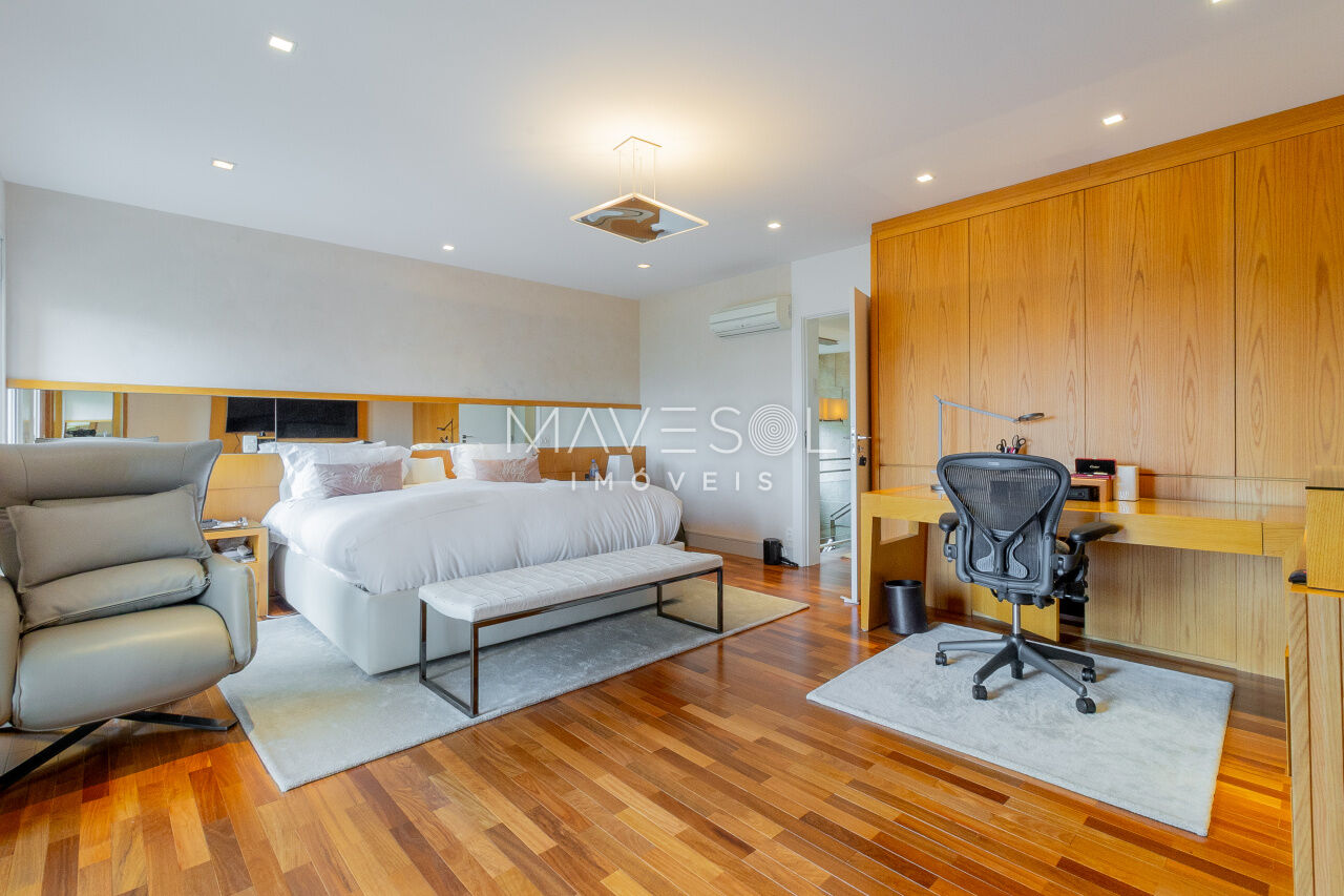 A área íntima conta com quatro suítes, com destaque para a suíte master extremamente espaçosa, equipada com jacuzzi, proporcionando um verdadeiro refúgio de descanso e bem-estar. Os ambientes são silenciosos, bem ventilados e com vista privilegiada.