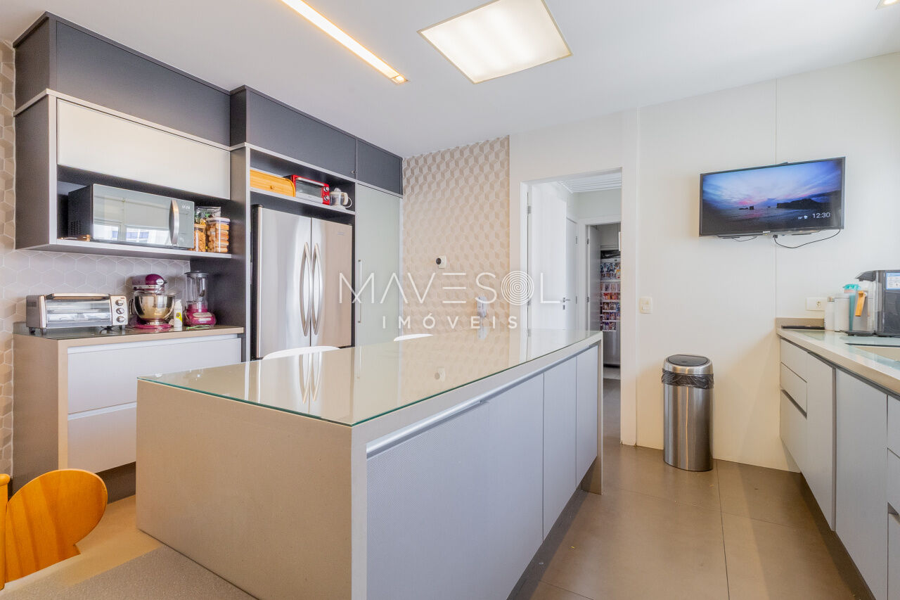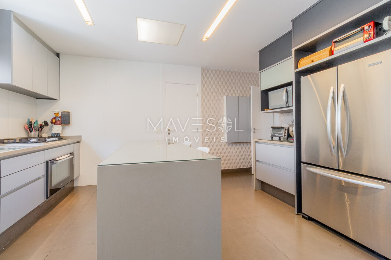 A cozinha é ampla e funcional, com fácil acesso à área de serviço, que conta com quarto e banheiro de empregada, atendendo perfeitamente às necessidades do dia a dia.