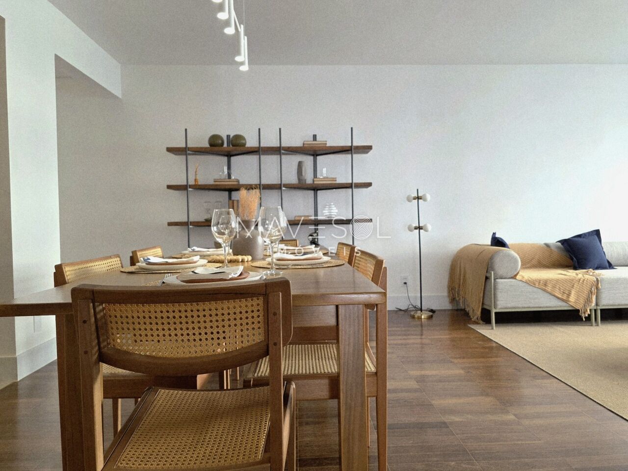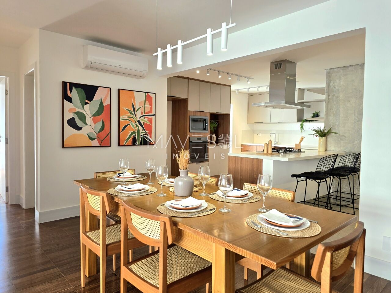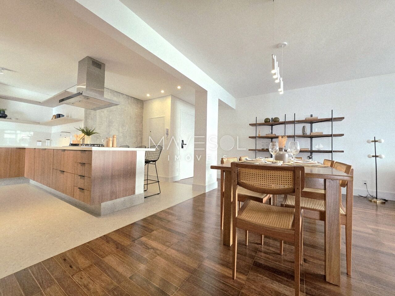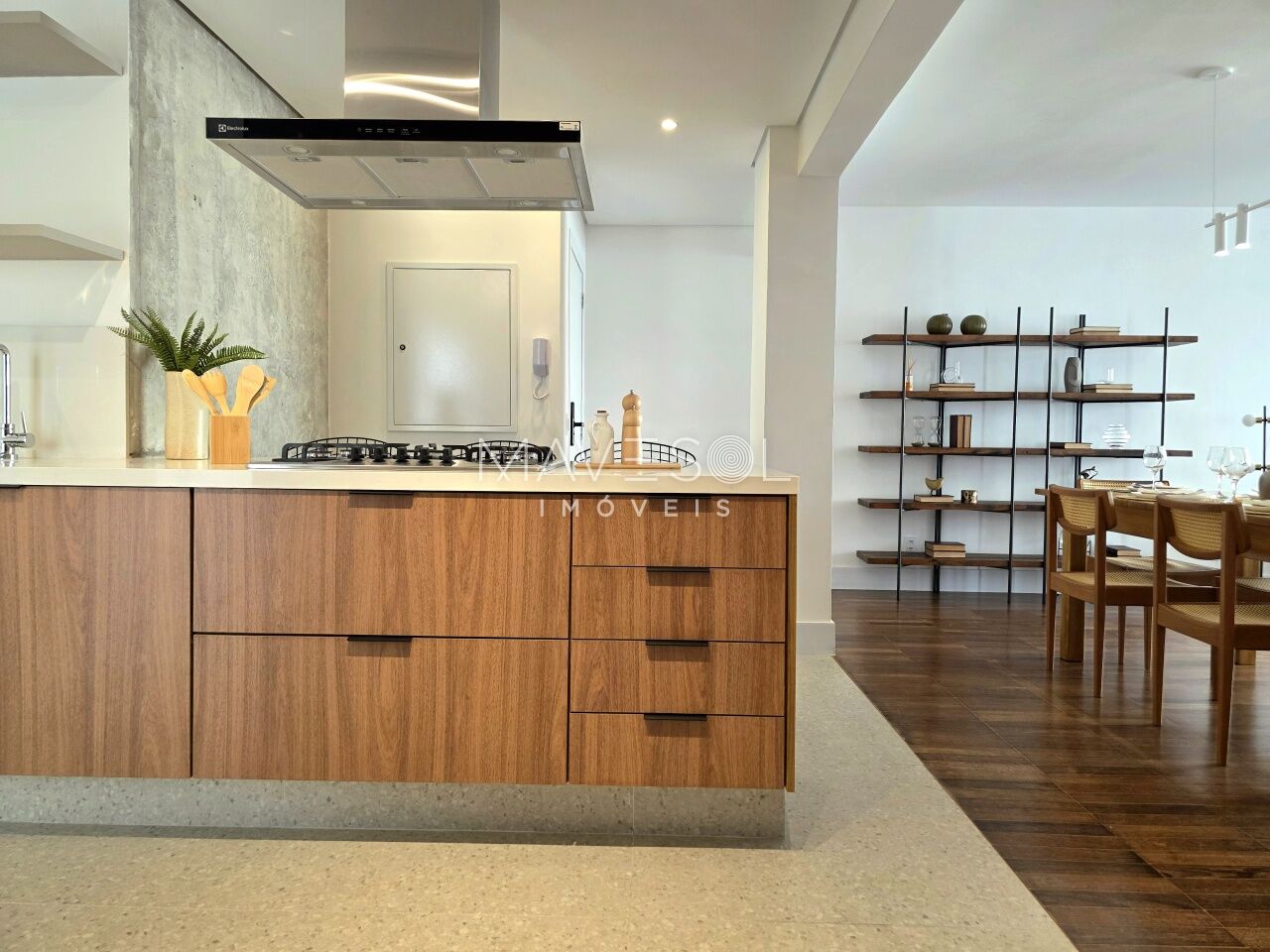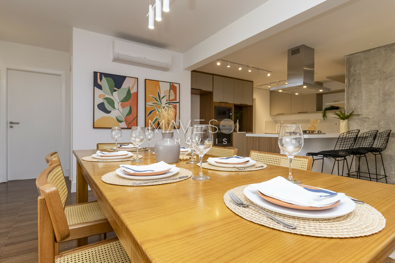 O piso da sala, no tradicional tacão de madeira Sucupira, foi finamente restaurado. O projeto é complementado por acabamentos de alto padrão, marcenaria sob medida na cozinha, área de serviço e banheiros, além de eletrodomésticos instalados (cooktop, coifa, forno elétrico) e aquecedor a gás.