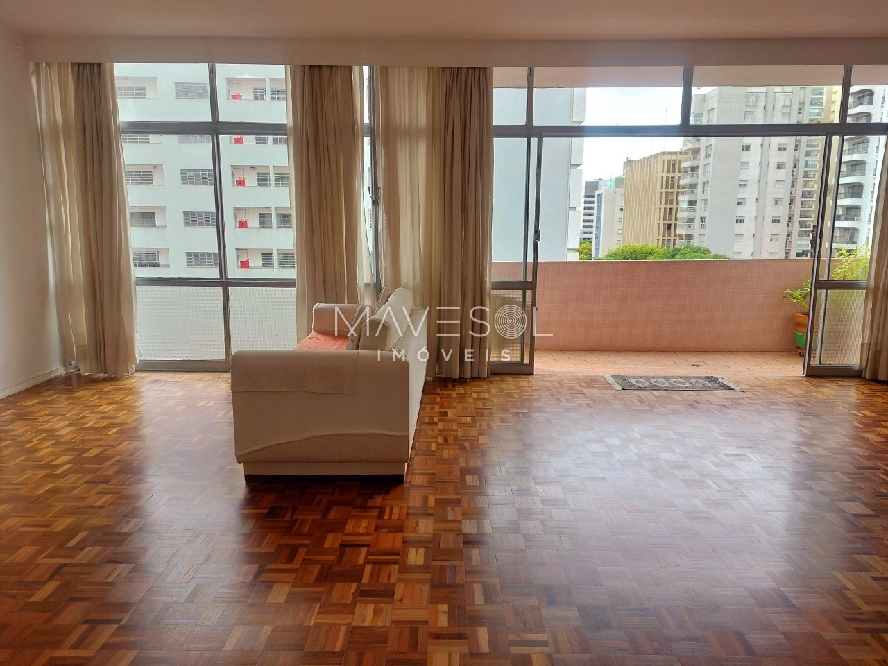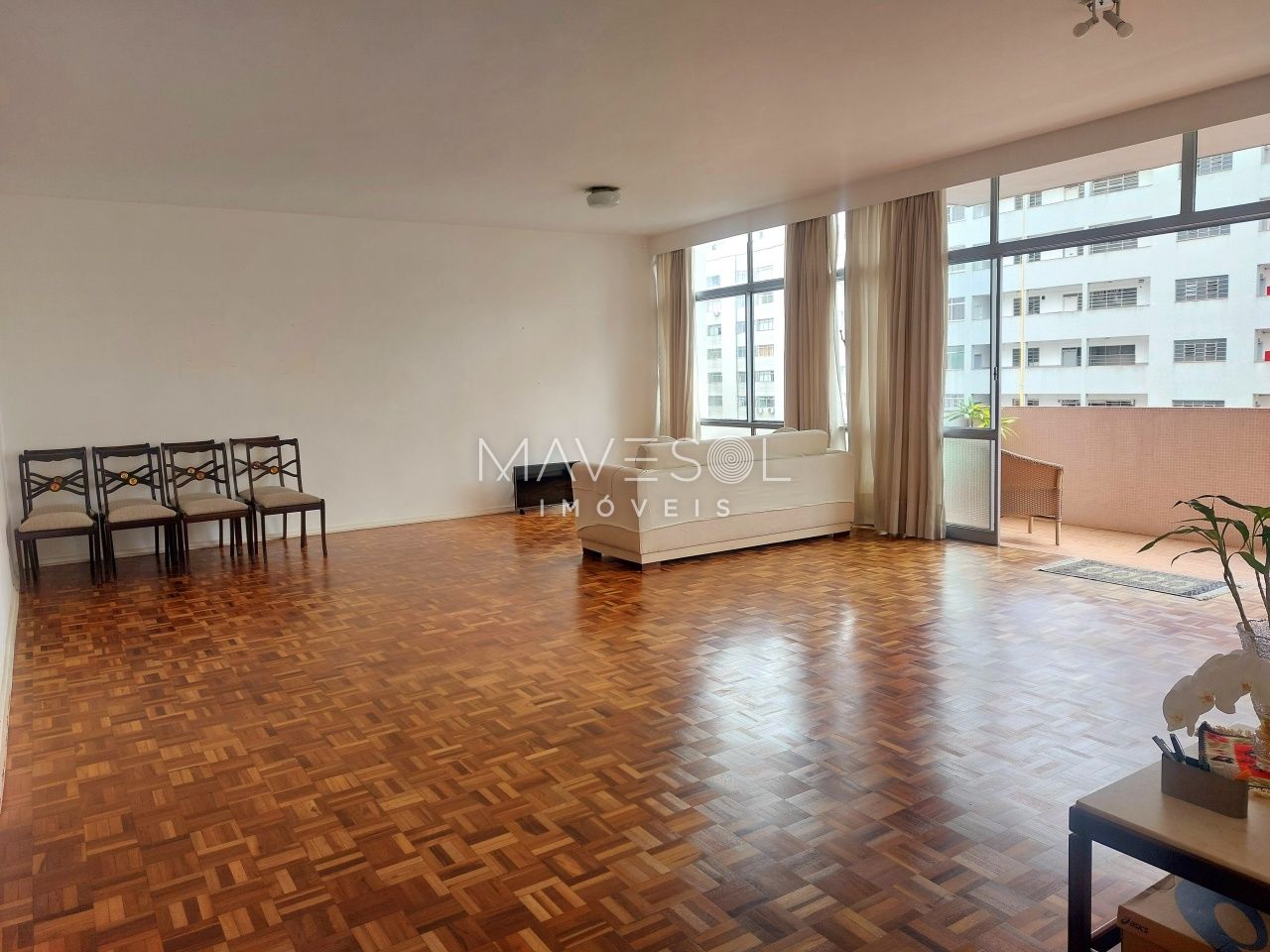 Em um dos cinquentões mais charmosos do bairro, apartamento de 197 m² de área útil, possui pé direito alto, janelões incríveis na sala com varanda generosa, piso em tacos de madeira original e excelente estado de consevação, são 3 dormitórios sendo 1 suíte, 1 WC social, 1 lavabo, living para 3 ambientes e 1 vaga de garagem.