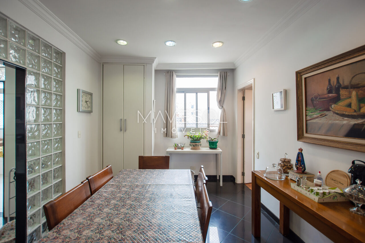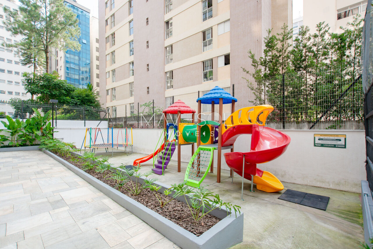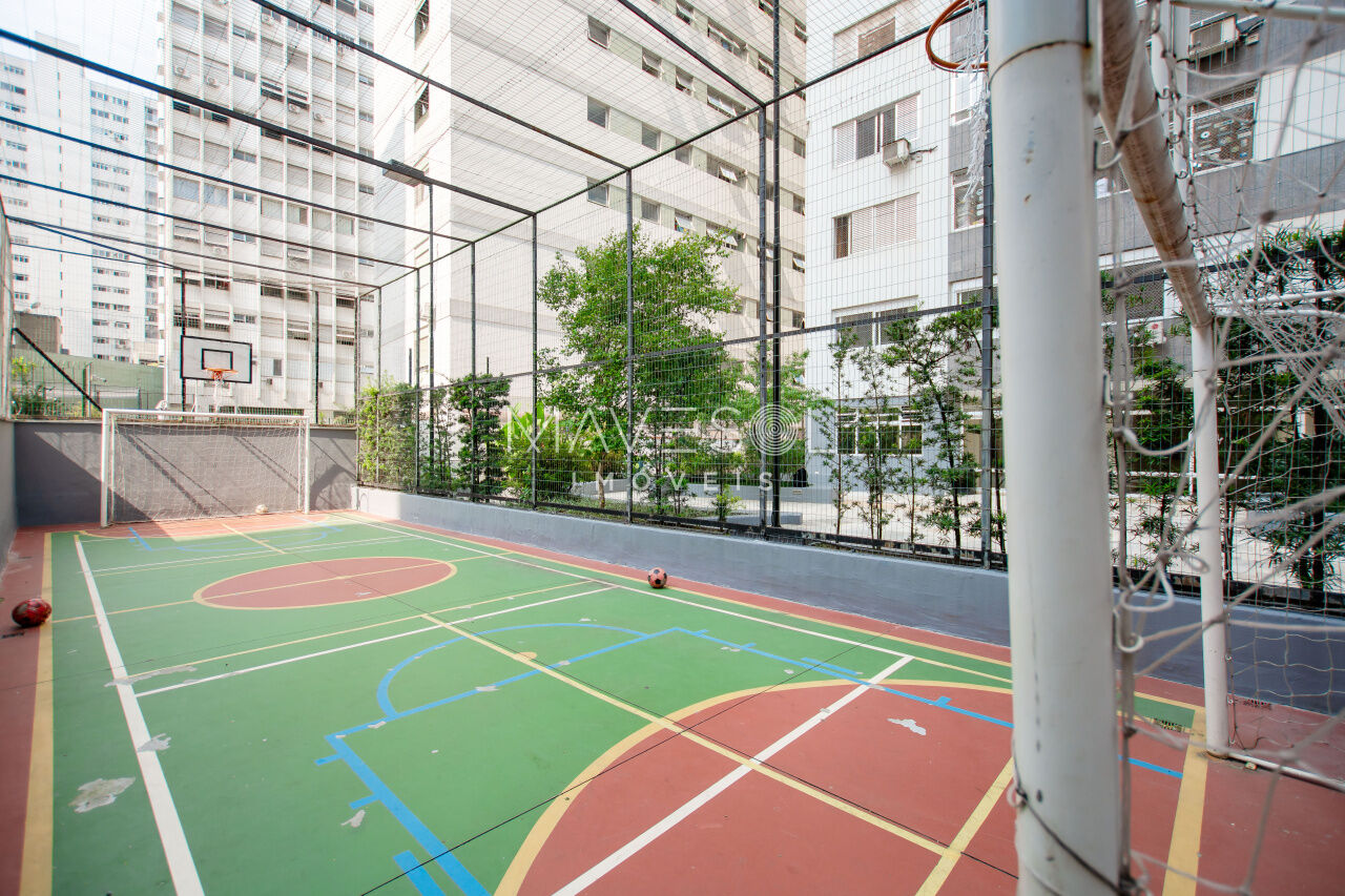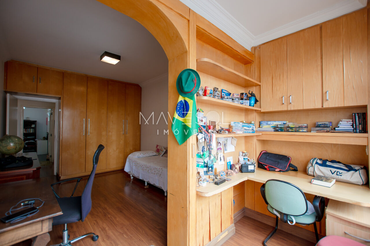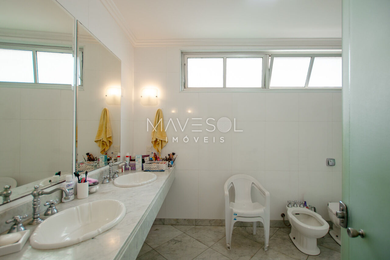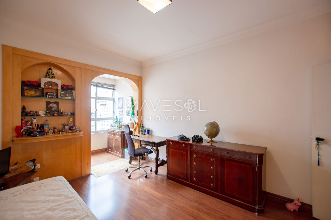 Apartamento amplo e ensolarado com vista linda para o skyline paulista, em localização privilegiada, próximo de todas as facilidades do bairro, padarias, cafés, praças, restaurantes e do Shopping Higienópolis. O living espaçoso com janelões de parede a parede acomoda três ambientes de forma confortável, incluindo sala de jantar, sala de TV e lavabo. A copa-cozinha é funcional e bem planejada. A planta original possui três dormitórios, sendo uma suíte mais sala intima, com a reforma, tem o quarto dormitório, que originalmente é o quarto de empregada, também conta com dois banheiros, todos com armários .
