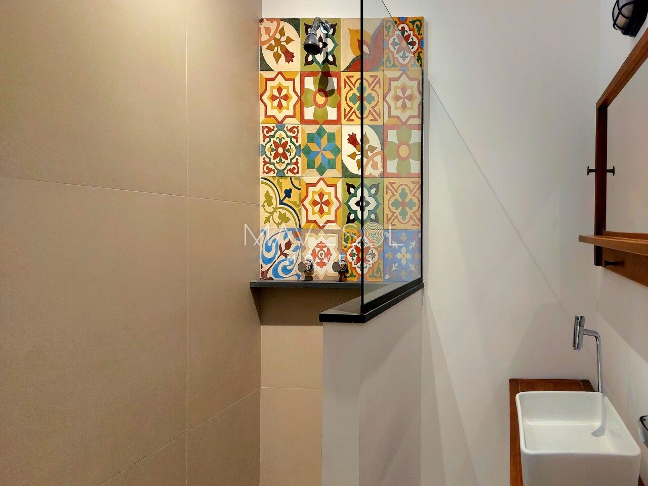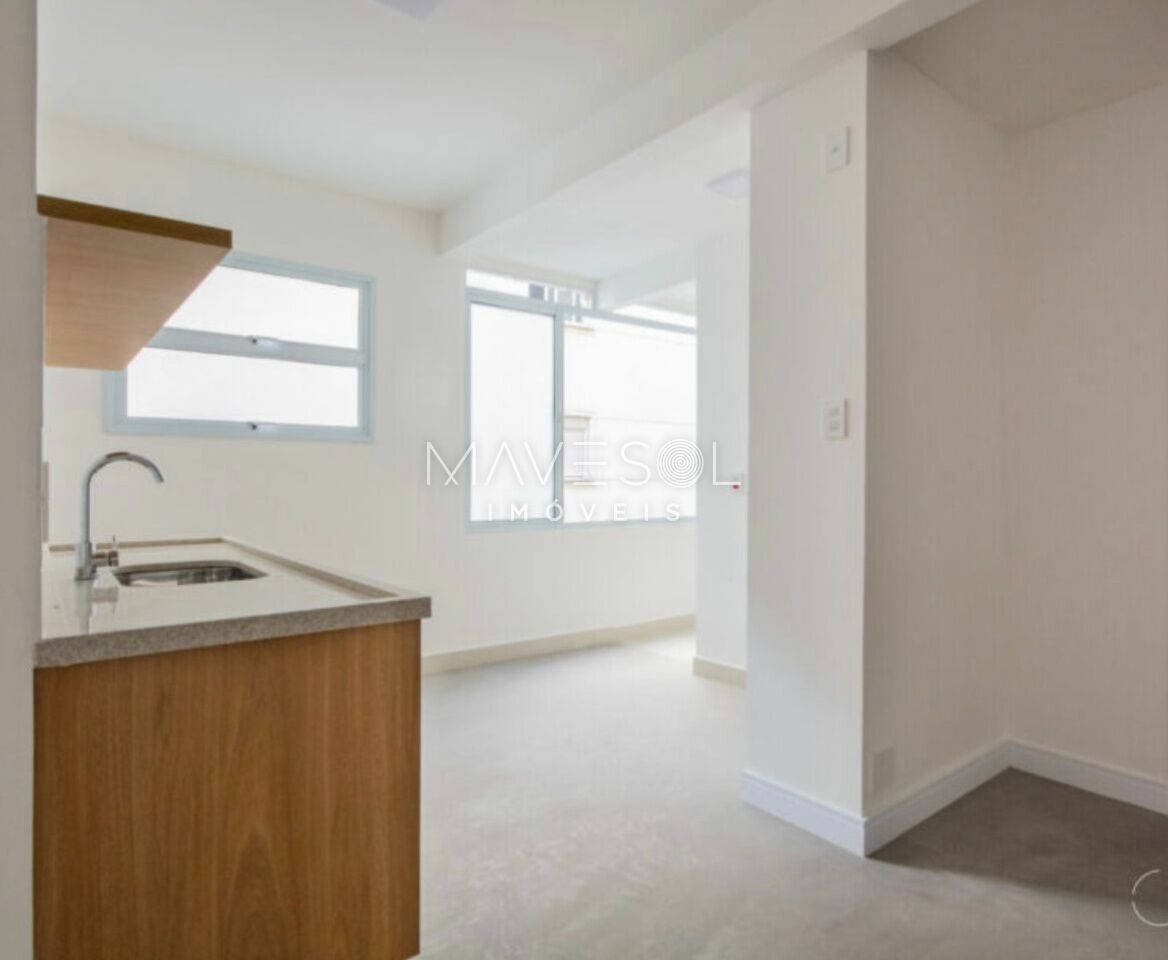 A reforma deu prioridade ao aproveitamento de todo o espaço nesse apê de 96m² muito bem distribuídos. Ele conta com 2 dormitórios, sendo 1 deles com terraço espaçoso, e armários planejados, foram preservados vários elementos originais tais como; o piso em tacos de madeira foram revitalizados, estão impecáveis, vigas de concreto aparente e paredes de tijolinho a vista pintado de branco, a sala de estar e jantar esta com cozinha integrada, um convite para interagir e criar momentos afetivos que trazem significados memoráveis ao dia dia.