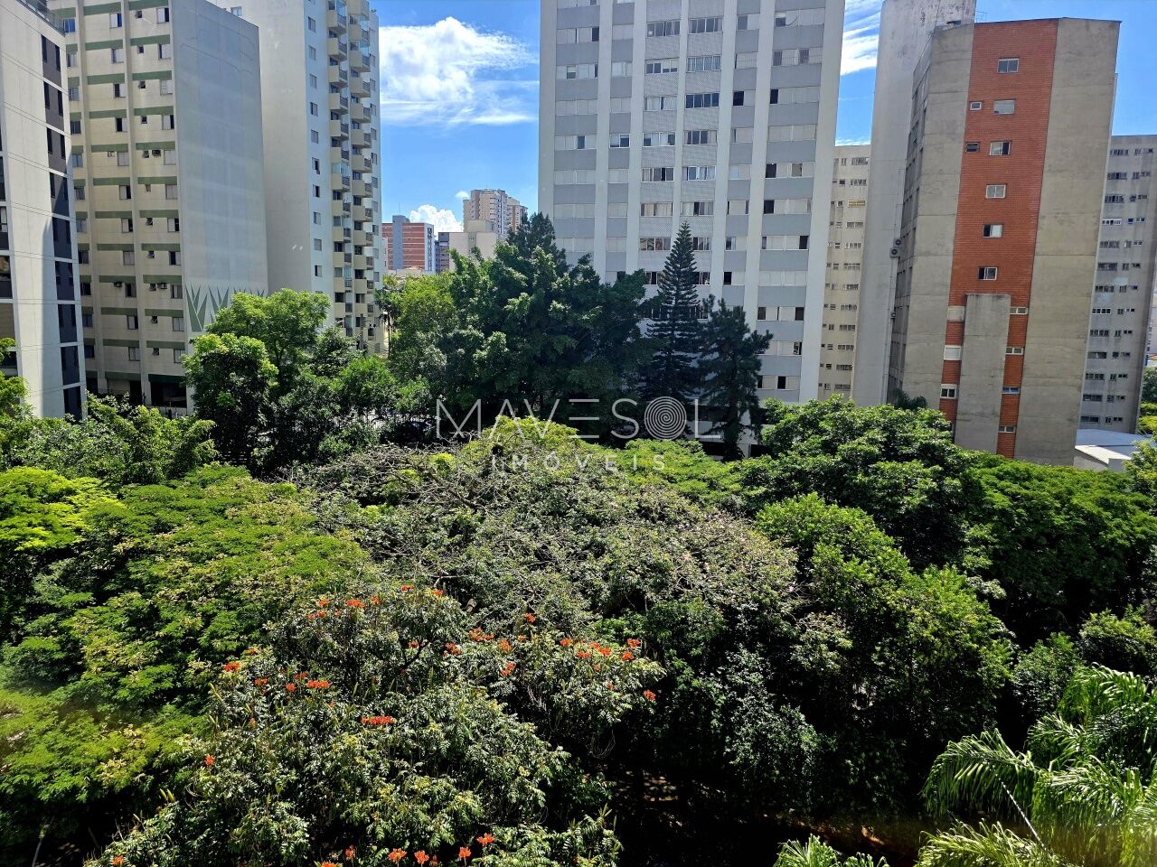 Apartamento reformado, ar condicionado na sala e dormitorios, rico em marcenaria, lavabo e vista para praça. Prédio com lazer completo. òtimo custo benefício.